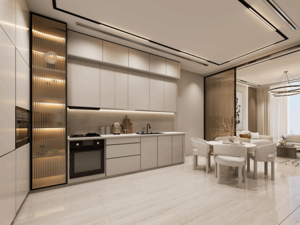 طراحی داخلی آپارتمانها با تأکید بر راحتی، زیبایی و کارایی انجام شده است. نور طبیعی حاصل از پنجرههای پانورامیک فضای داخلی را روشن و دلپذیر میسازد، بافتهای نرم حس آرامش را تقویت میکنند و استفاده از متریال و جزئیات ممتاز، جلوهای لوکس و چشمنواز به محیط میبخشد.