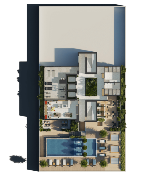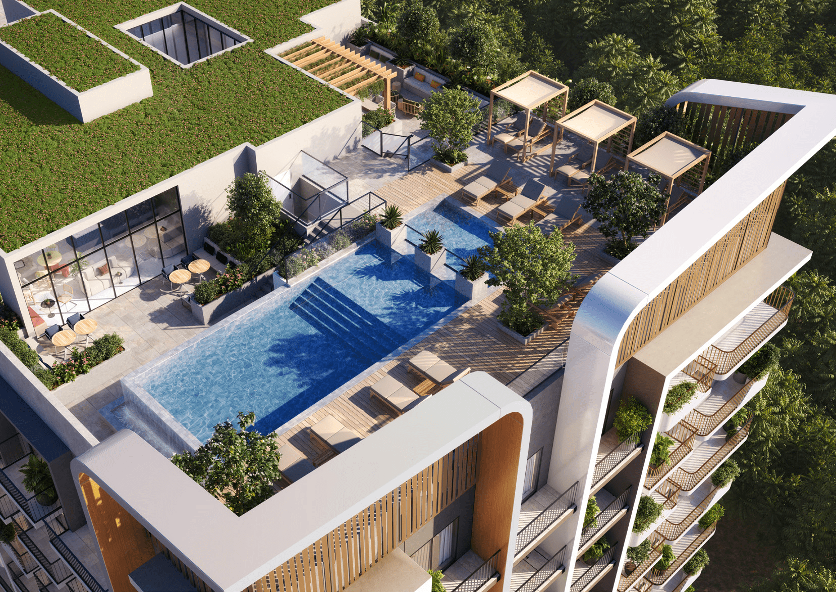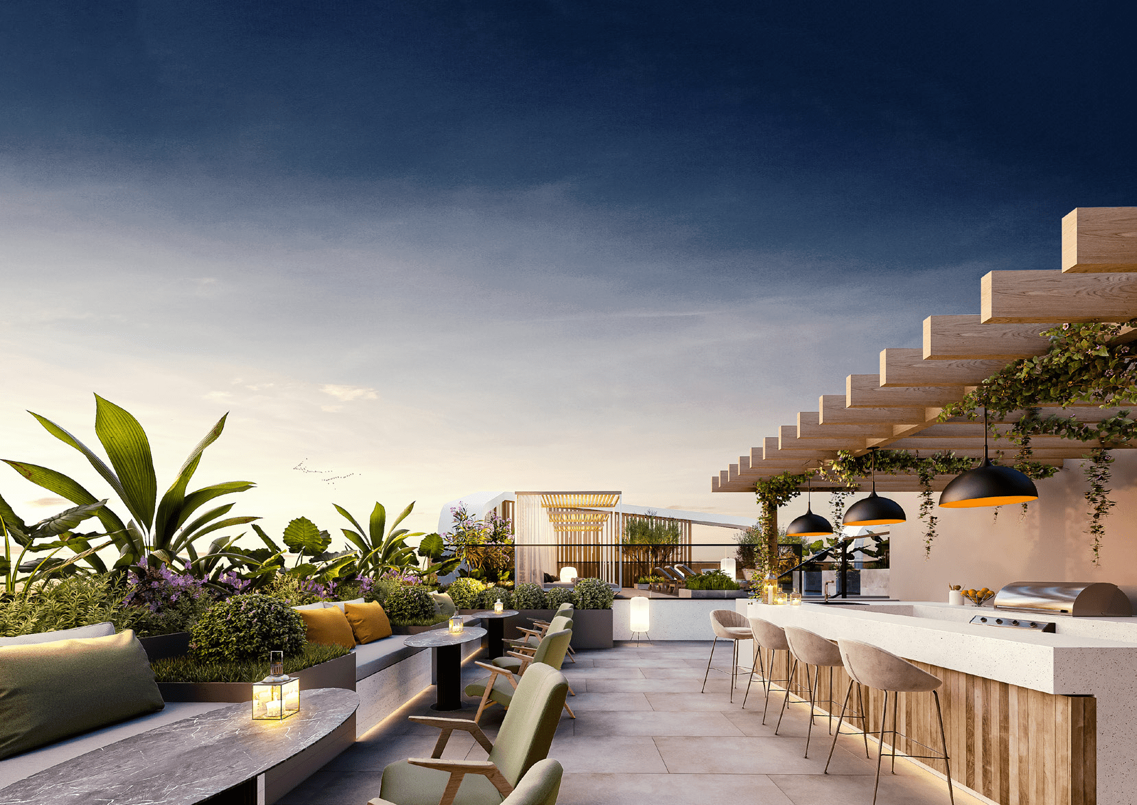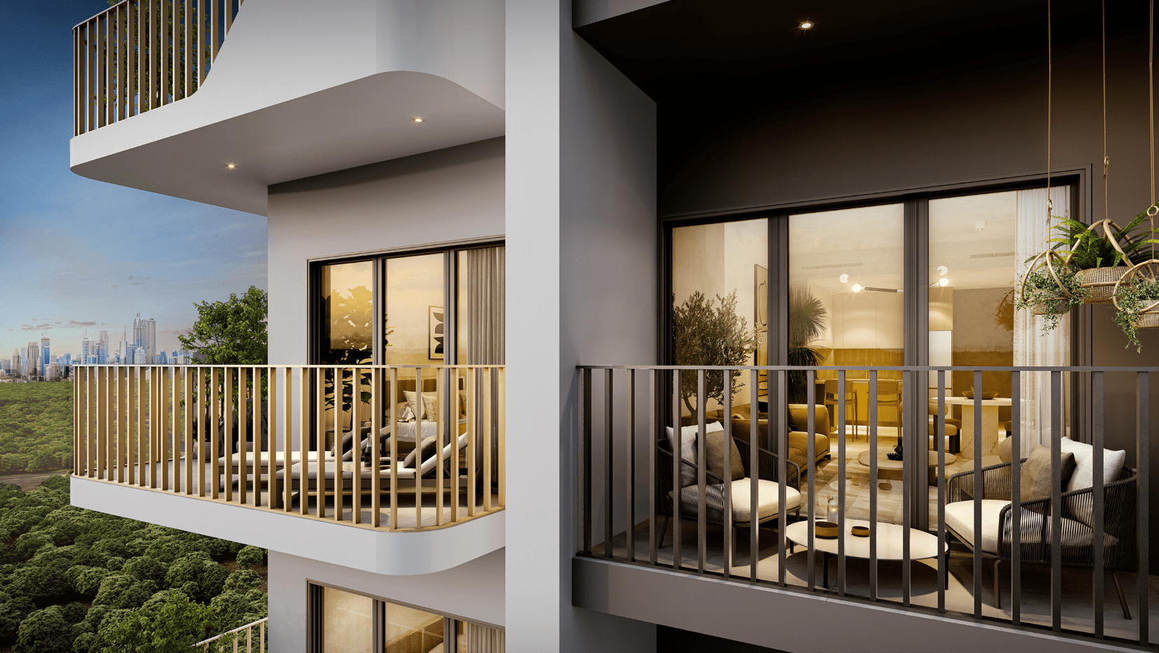 همه آپارتمان ها دارای بالکن های بزرگ هستند که به عنوان گسترش فضاهای داخلی برای ادغام یکپارچه داخل با بیرون عمل می کنند. علاوه بر این، بالکنهای آفتابی وسیع به ساکنان این امکان را میدهند که مناظر فردی خود را مطابق با ترجیحات خود ایجاد کنند. باغ های عمودی را نیز می توان در تراس های خصوصی برای پرورش انواع گیاهان و سبزیجات ارگانیک تازه در نظر گرفت.